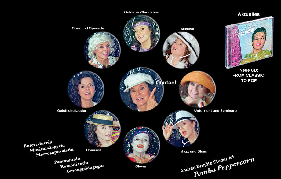 Goldene 20er Jahre Musical Unterricht und Seminare Jazz und Blues Clown Chanson Geistliche Lieder Oper und Operette Contact Andrea Brigitte Studer ist Pemba Peppercorn Aktuelles